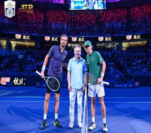 品牌日当晚,黄黎明受邀登台为四分之一男子单打比赛执行挑边仪式。当承载着赛事期待的硬币被抛向空中,不仅象征赛事进程的稳步推进,更传递出光明乳业始终与中国网球并肩前行、共逐突破的坚定承诺。