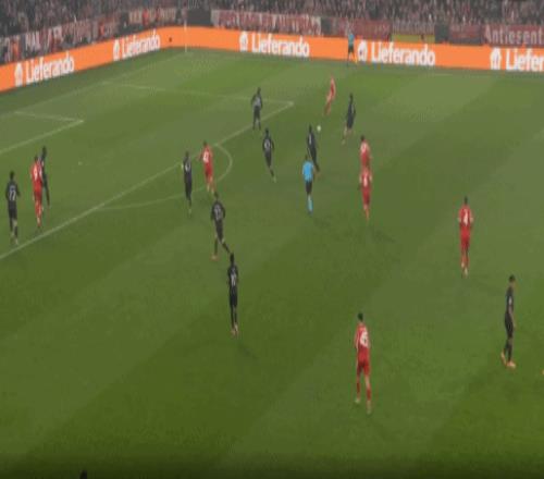 第69分钟,塔上抢断球,基米希就地反击,奥利塞分向右路,莱默尔果断起球,卡尔后排插上左脚停球右脚小角度劲射一气呵成,2:1!拜仁4分钟连进2球完成反超,年仅17岁的卡尔成为了自1992/93赛季欧冠改制以来连续3场欧冠都进球的最年轻球员。